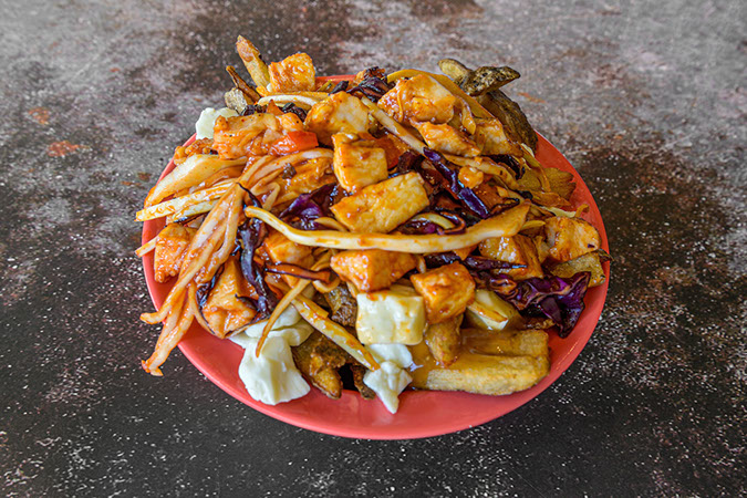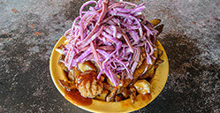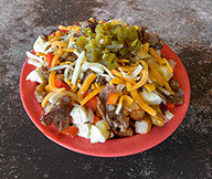 BOEUF TRANCHÉ, CHEDDAR TEX-MEX, OIGNONS, POIVRONS ET JALAPEÑOS MARINÉS