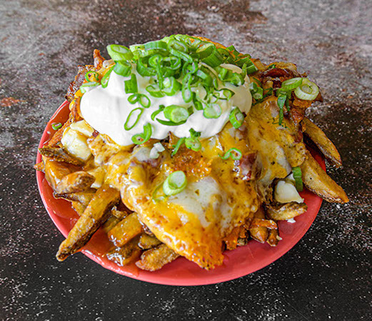 BACON, CHEDDAR TEX-MEX, CRÈME SURE ET OIGNONS VERTS